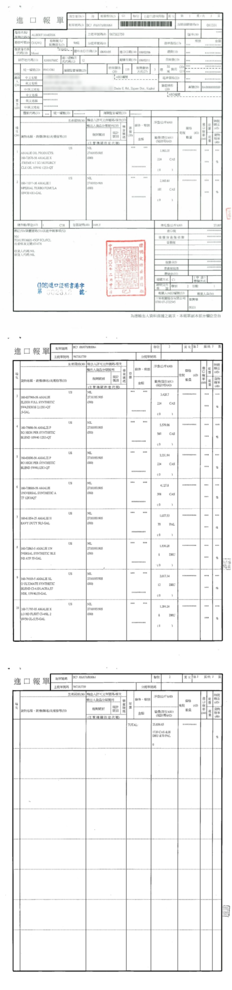 愛馬力機油-2019進口報單