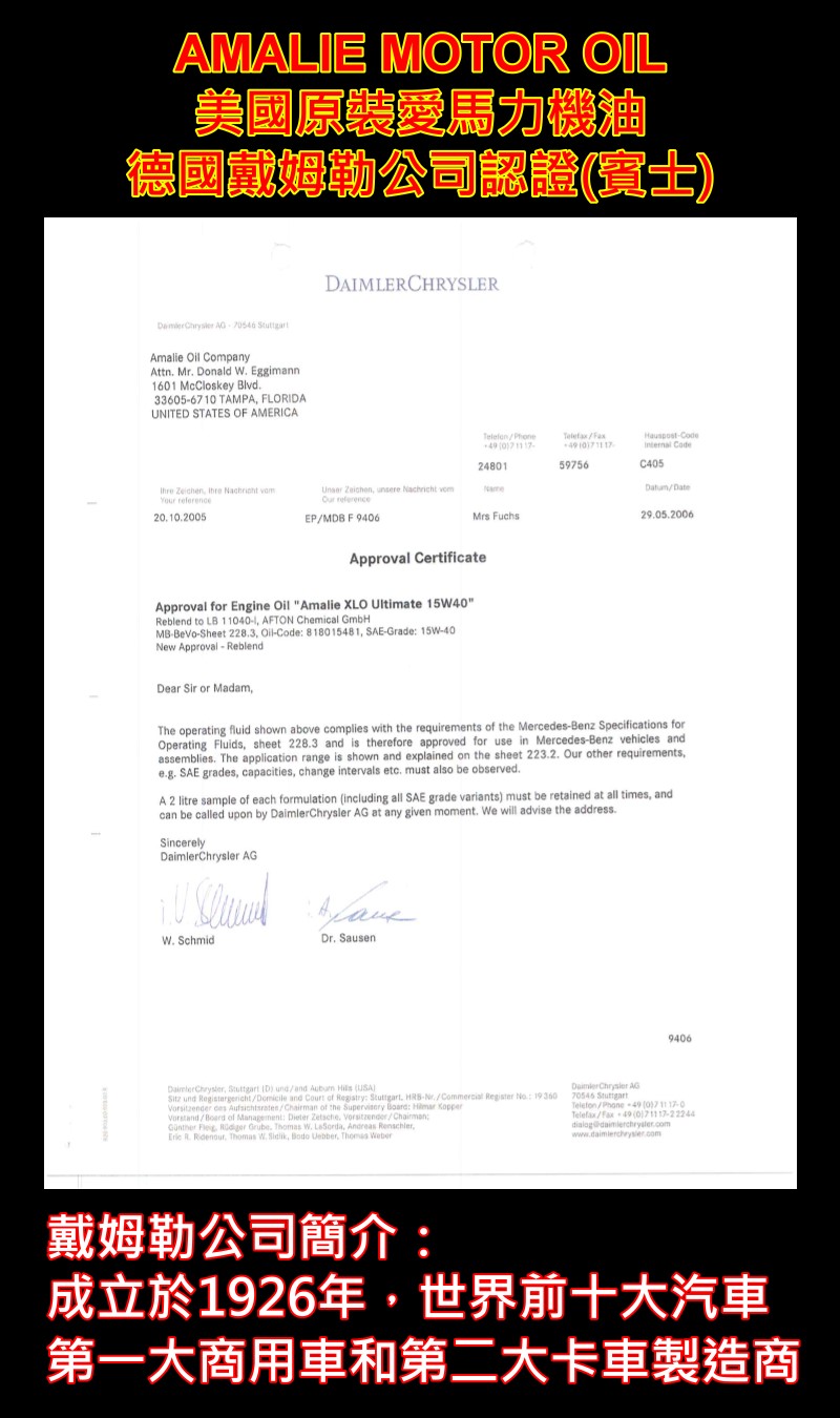 愛馬力機油-戴姆勒(賓士)認證