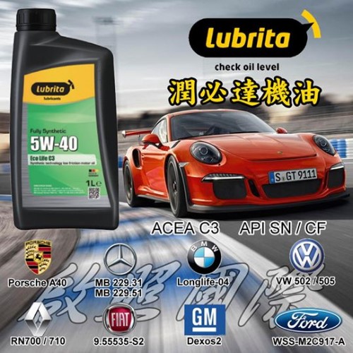 Lubrita Eco Life C3 SAE 5W-40符合以下性能規格: