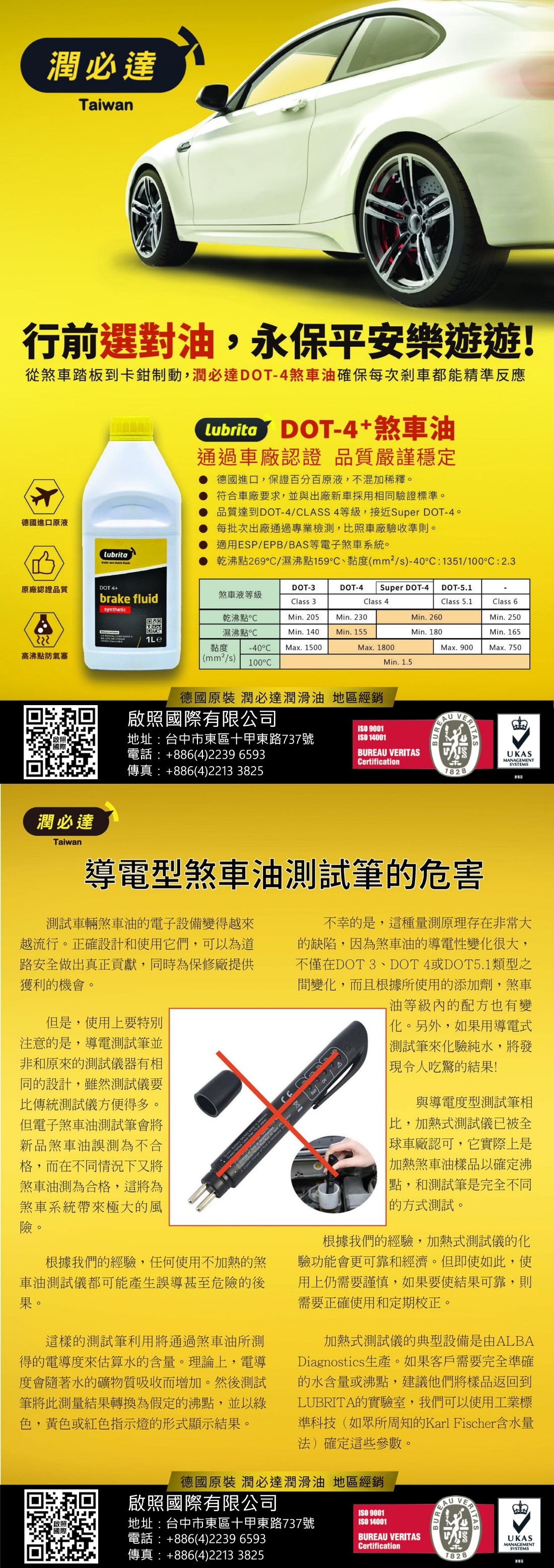 潤必達DOT-4+煞車油 通過車廠認證 品質嚴謹穩定